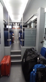 Nous cheminons jusqu’à Lanquart une petite gare Suisse. Une fois débarqué nous cherchons la correspondance pour Scuol, le temps de trouver le train est déjà partit. Nous attendons donc la nouvelle correspondance 1 heure plus tard. Nous montons dans un train ultra moderne et l’on découvre que la ligne que nous empruntons est classé patrimoine mondial UNESCO. Pas de chance il fait nuit.