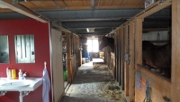 La piste qui nous conduit à Adelboden a un effet relaxant. Jean mi a retrouvé appétit et m’invite au resto : pate au saumon ! Nous trouvons un magasin de vélo pour changer la selle du pilote Orbea. Le vendeur super sympa nous explique qu’il descend souvent la même descente sans mettre pied à terre!! « C’est chez moi ici, je connais la trace par cœur » … respect ! Notre aventure se termine sur la paille, en compagnie de Cindy, une jolie jument à robe brune.