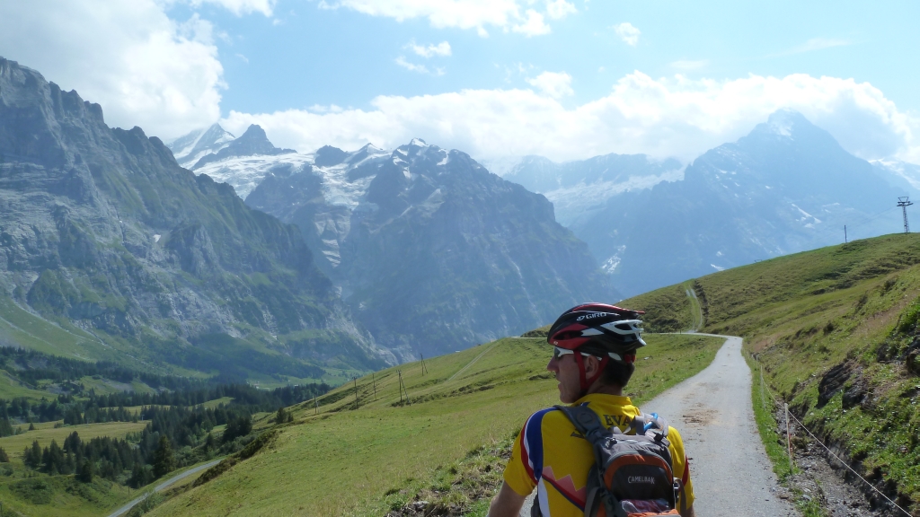 Pour éviter un long portage on emprunte le col routier pour terminer sur la piste à 2255m. La vue sur les glaciers y est magnifique mais ce n’est qu’une mise en bouche par rapport à Grindelwald.