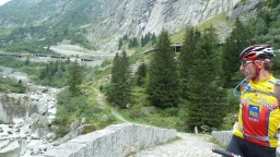 Lorsque nous quittons Andermatt le ciel est voilé de nuages gris. Cela ne présage rien de bon pour les 2 énormes cols qui nous attendent. Nous quittons le col routier qui mène à la station pour prendre l’itinéraire off road. La vallée est tellement étroite qu’il est impossible à 2 chemin de coexister. Pour rendre cette descente possible les aménagements réalisés sont impressionnants : passerelles, ponts et passages sur paravalanche …