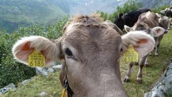Plus haut un troupeau de vache nous force à laisser place et un veau curieux vient lécher mon VTT j’en profite pour le caresser… ce qui n’est pas du gout de la vache en chef qui a coup de tête remet le trouble fait sur le droit chemin ! Meeeuuuu !!!