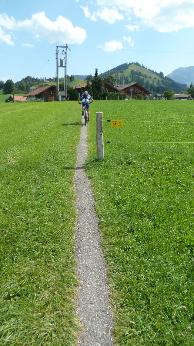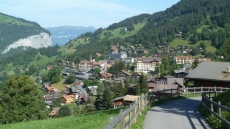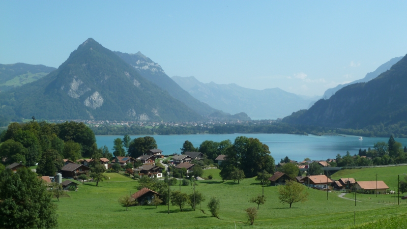 Nous traversons Wengen un charmant village sans voiture relié par la vallée par train ou par la piste que nous empruntons. C’est l’alpe d’huez façon VTT : une succession d’épingles sur de la pente raide. Nous continuons vers Interlaken.
